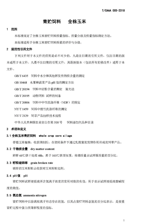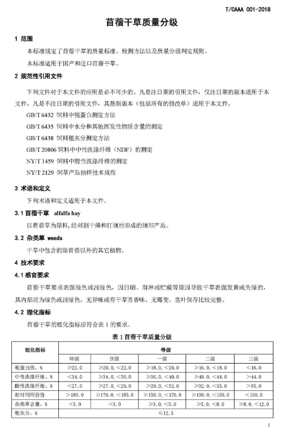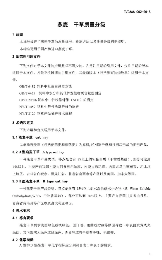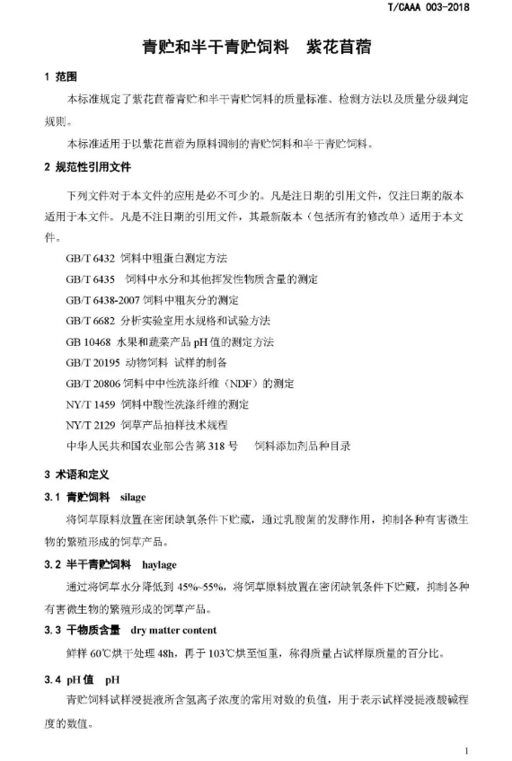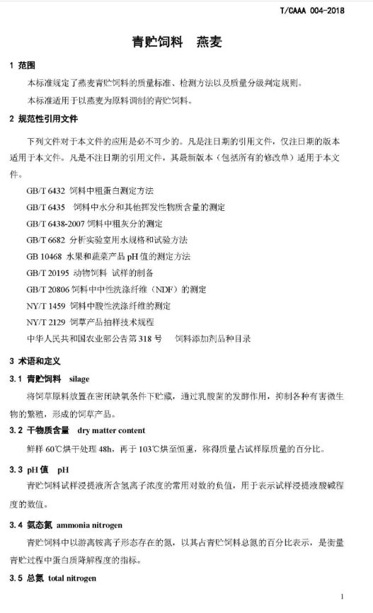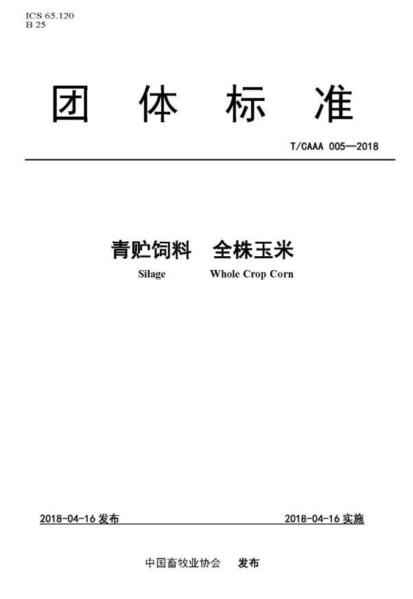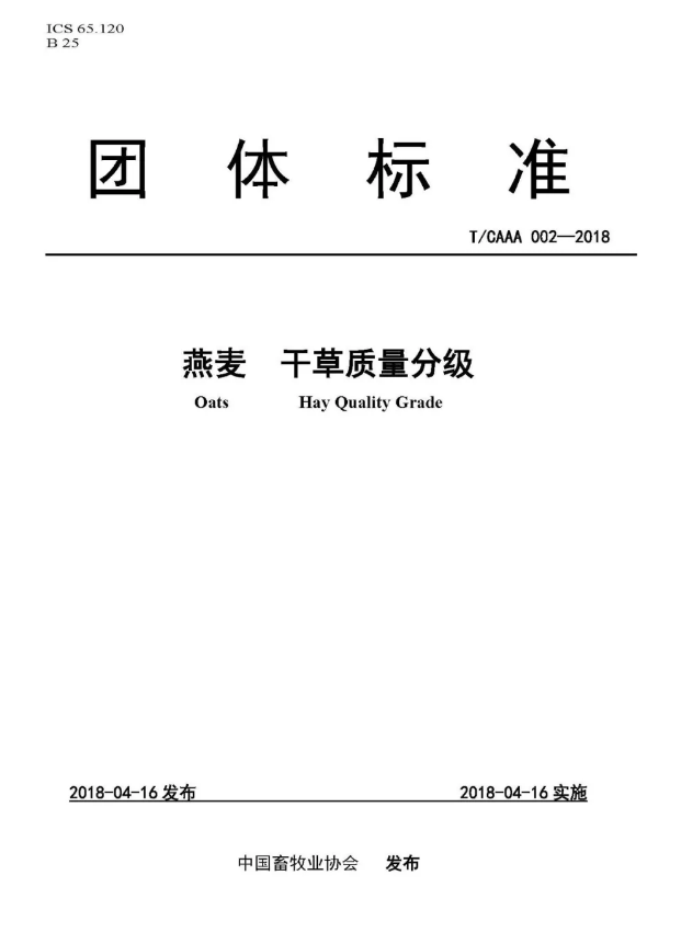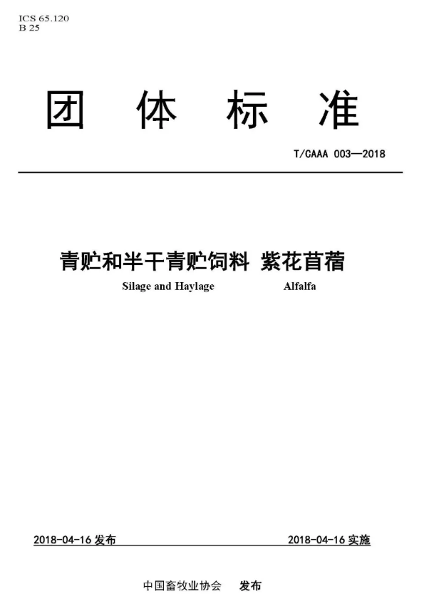 根据《中国畜牧业协会团体标准管理暂行办法》规定,2018年4月16日中国畜牧业协会审核通过了《苜蓿干草质量分级》、《燕麦干草质量分级》、《青贮和半干青贮饲料 紫花苜蓿》、《青贮饲料 燕麦》、《青贮饲料 全株玉米》、《毛用兔饲养管理技术规程》等6项团体标准现予以正式公布并于当日正式实施。